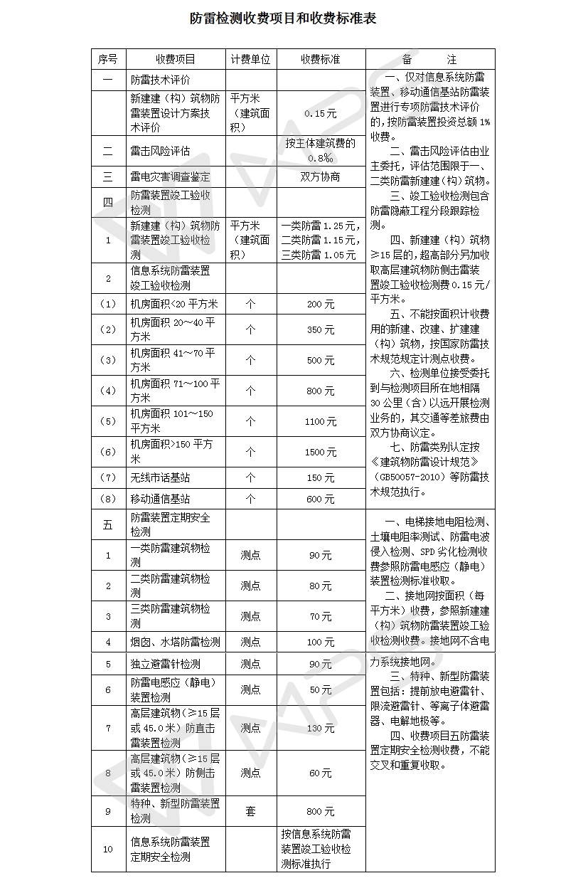 關(guān)于公示防雷裝置檢測服務(wù)收費(fèi)標(biāo)準(zhǔn)的通知
